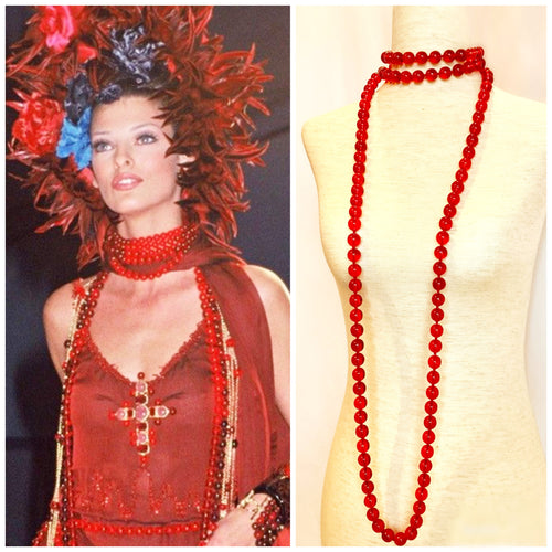 CHANEL RUNWAY GRIPOIX RED GLASS JUMBO BEADS 1992 VINTAGE XXL NECKLACE SAUOTOIR