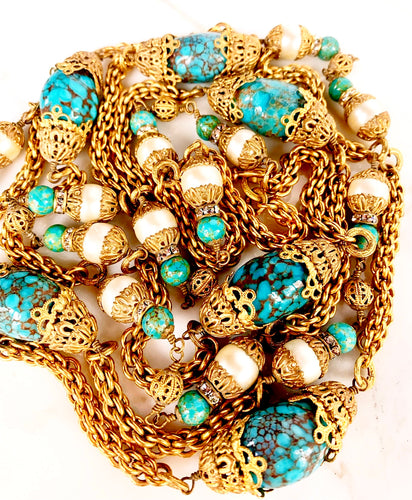 CHANEL RARE MASSIVE GRIPOIX TURQUOISE GLASS PEARLS SAUTOIR