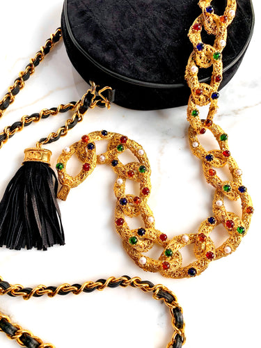 CHANEL 31 ELABORATE AMULET MEDALLION CHARM GRIPOIX NECKLACE BELT NEW WITH TAGS