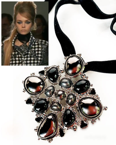 CHANEL MASSIVE RUNWAY RESIN AND VELVET 2008 RUTHENIUM NECKLACE CHOKER NEW WITH TAGS