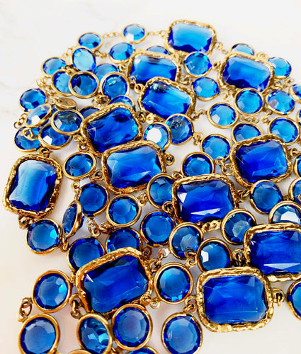 CHANEL ORIGINAL CHICKLET RARE SAPPHIRE BLUE CRYSTAL VINTAGE 1981 LONG SAUTOIR