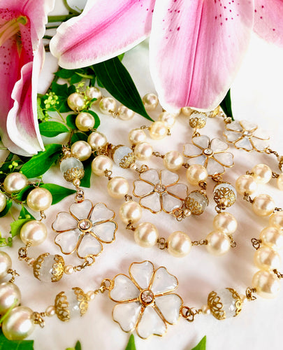 CHANEL RARE GRIPOIX DAISY FLOWERS AND GLASS PEARL VINTAGE NECKLACE