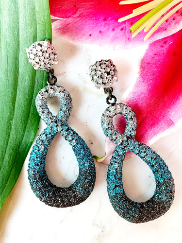 FRENCH DISCO MASSIVE OMBRÉ BLUE GLITTER DANGLE EARRINGS