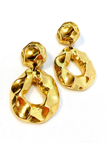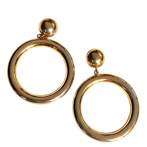 JACKY DE G FRANCE COUTURE GILT HUGE MODERN BAROQUE HOOP VINTAGE 1980's EARRINGS