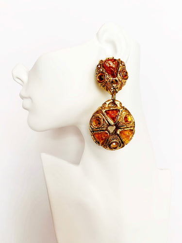 FRENCH DESIGNER MASSIVE AMBER RESIN HOOP EARRINGS UNSIGNED