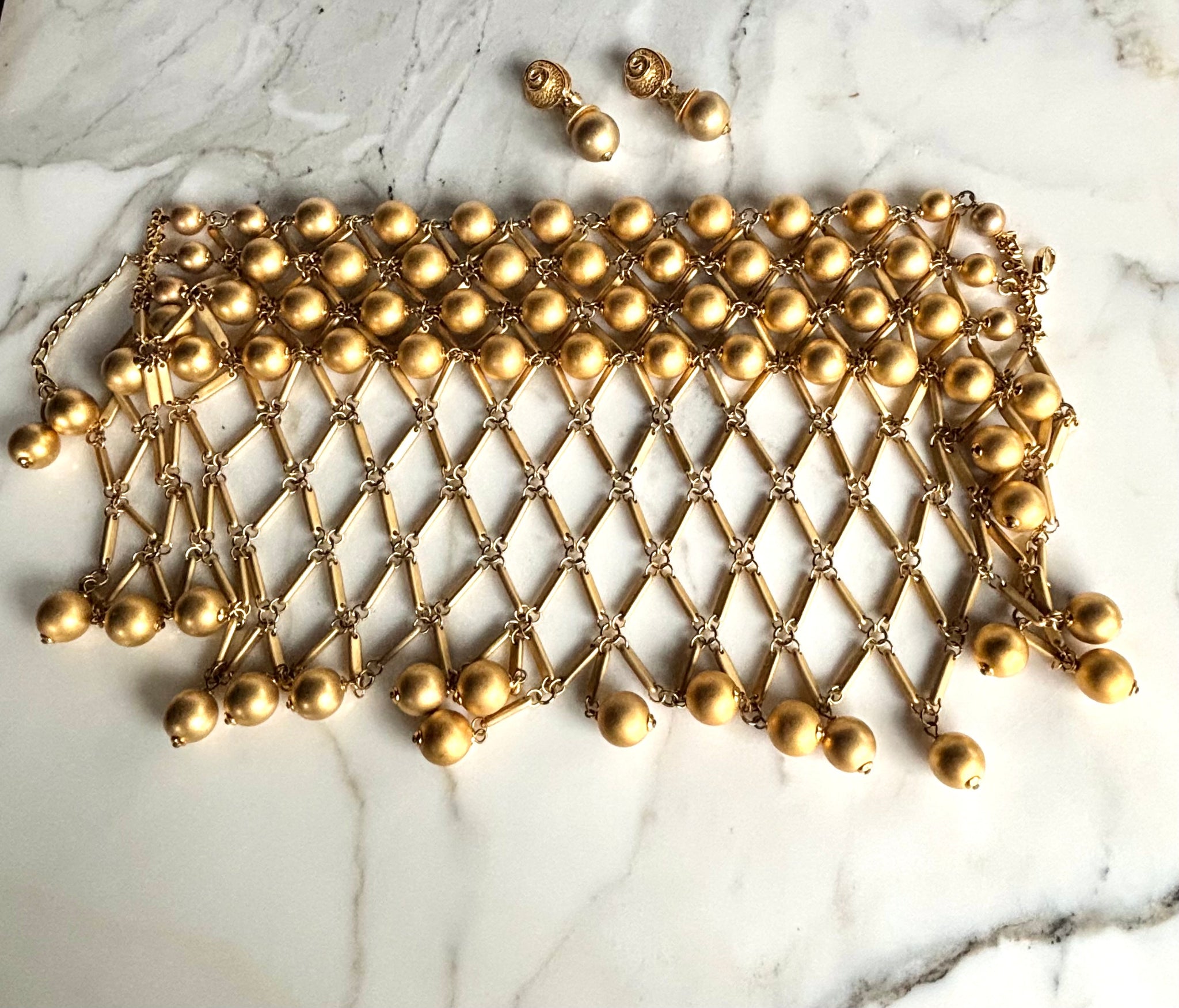 RARE Vintage POGGI Paris Parure - Matte Gold Necklace and Earrings